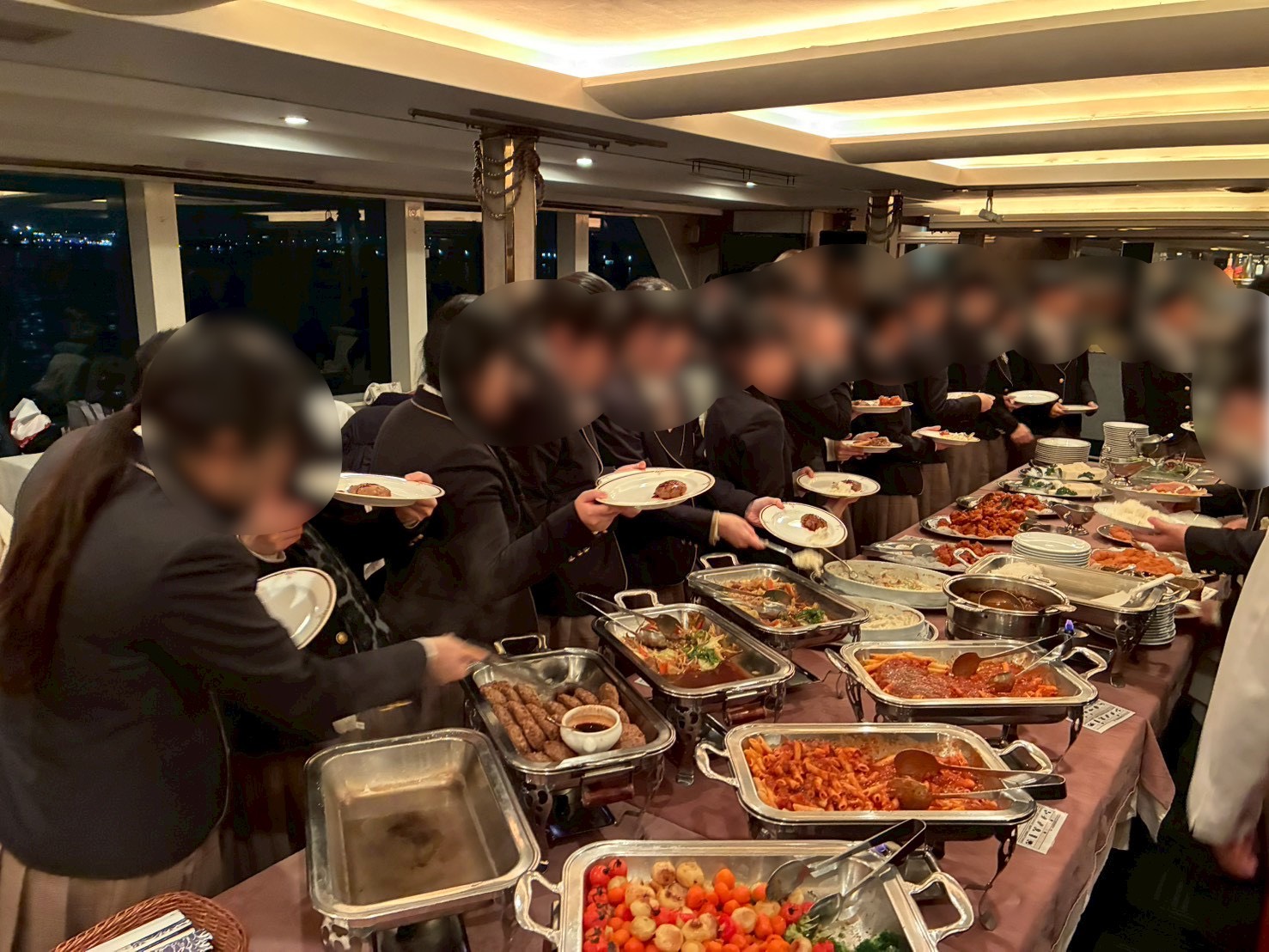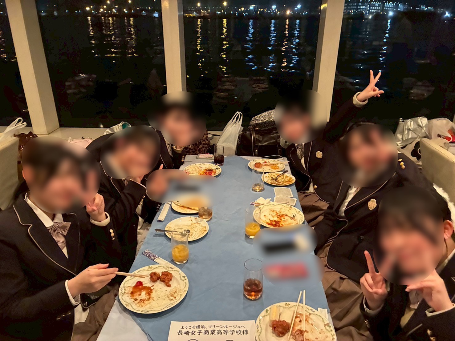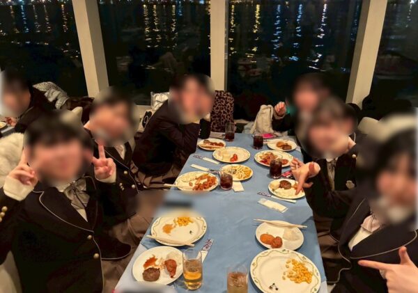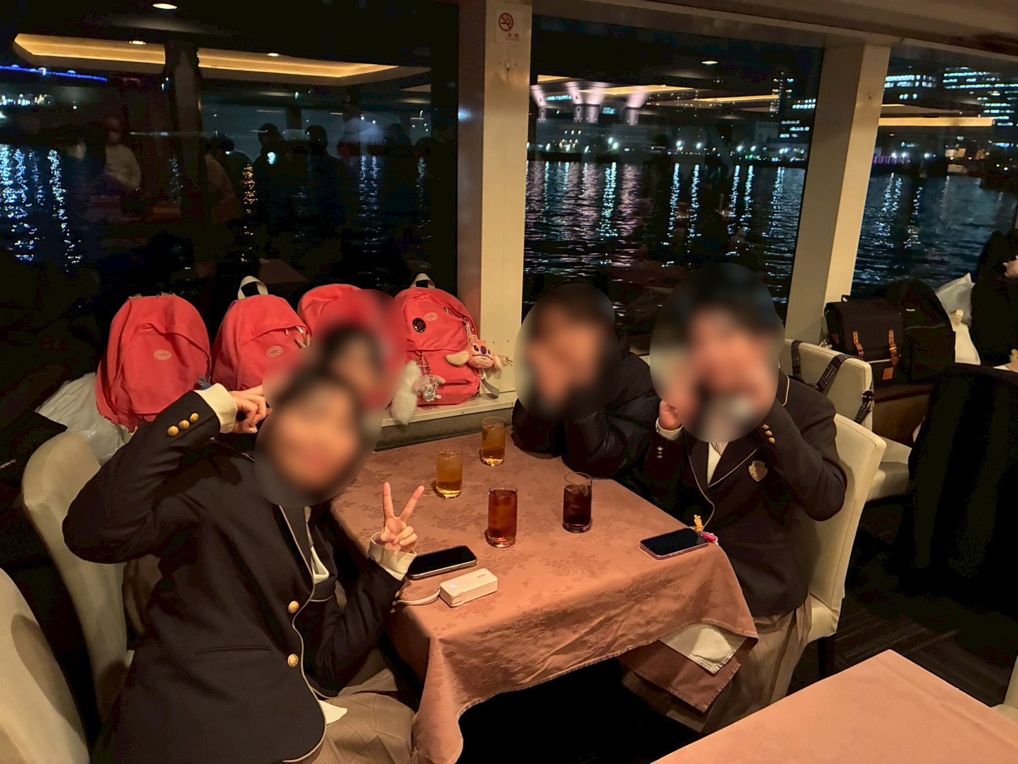 18:30~船上ディナークルーズです🚢🌊✨みんなで夕食です😋修学旅行期間中にお誕生日を迎えた人をお祝いします😊HAPPY BIRTHDAY❣