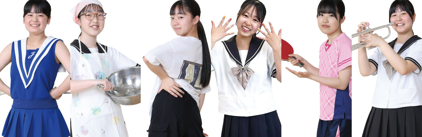 部活動 Club Activities Total Business Department 運動系部活動では、物事に立ち向かう強い精神力、集中力を養います。文化系部活動では専門的な技術の習得だけでなく活動を通じて、豊かな感性、創造力を身につけます。高校に入学してからも、中学と同じ部活動を続けてさらなる飛躍をめざして、活躍をしている生徒も多数います。 Sports 運動系部活動 ■卓球部■テニス部■バドミントン部■バレーボール部 ■バスケットボール部■バトン部■ダンス部 Culture 文化系部活動 ■吹奏楽部■コーラス部■華道部■珠算部■電卓部■書道部■美術部■パティシエ部 ■文芸部■インターアクトクラブ■茶道部■放送部■英語部■ワープロ部■情報処理部■簿記部■ネイル部 熱中できる、感動できる。3年間の思い出。 運動部活動の在り方に関するガイドライン 文化部活動の在り方に関するガイドライン 部活動 年間活動方針 及び活動計画